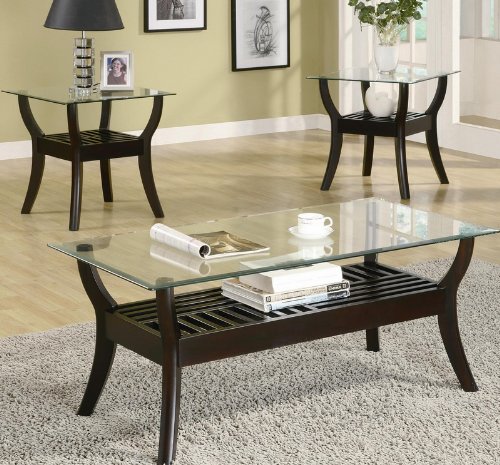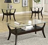 3pc Coffee Table Set with Glass Top in Nut Brown Finish Review